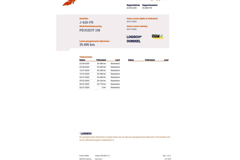 Huidige stand 35.496km